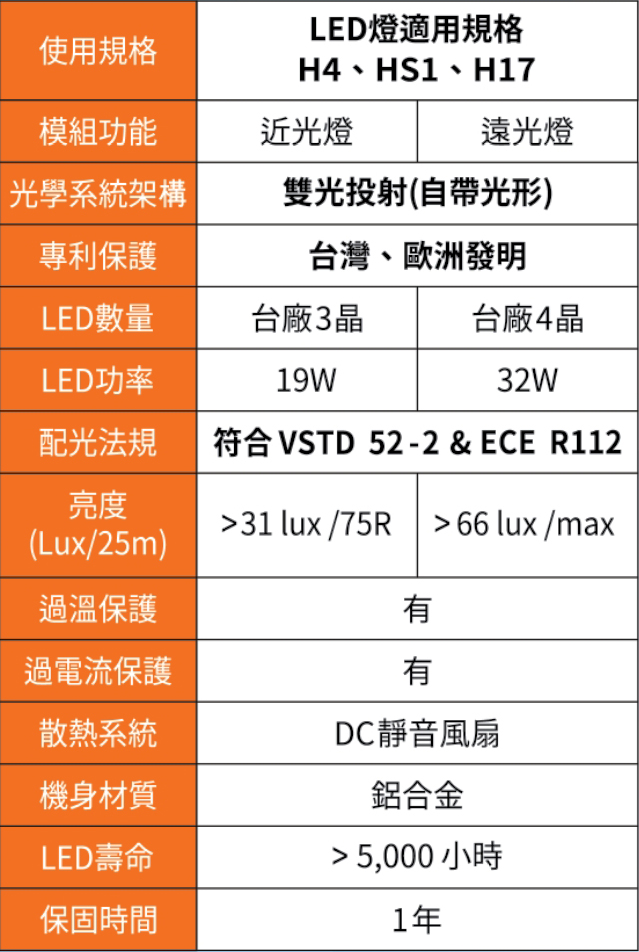 >適用H4、HS1、H17燈規車型、直上無須改裝