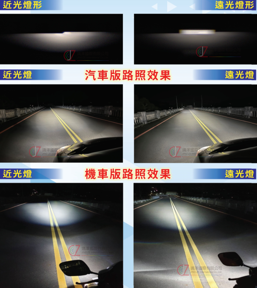 近遠雙光燈形LED大燈 34mm 非球面複合式光學級透鏡 高亮度LED 2300 lm (熱穩態亮度) 白光LED 色溫5700K 產品具備過電流保護 產品具備超溫保護 產品具備防電源突波保護 自帶DC靜音風扇強制對流散熱 鋁合金機身提昇產品結構安全性